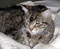 Story: Six months ago, when Ben was 14 he had a rapid weight loss - from 12.3 to 8.7 pounds. My vet ruled out thryoid problems and suggested exploratory surgery. I made the mistake of not opting for surgery due to his age and fears that he would not survive. We started him on Devo-Medrol and his weight rebounded. We then tried Leukeran but his appetite dropped off after two weeks and he lost weight.