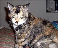 Story: Emily was diagnosed in Dec 2007 of Lymphoma. She really did not have the classic signs of it. It seemed to me that she was not eating as much as usual and had a vomitting episode one morning. I tought her thyroid medicine needed to be adjusted again. I took her to the Vet and he kept her for 4 days. She refused to eat anything. I became Very concerned. They took a x-ra and found a spot. My Vet told me to take her out of there and to a Cancer specialist. He took a ultra sound and found more spots. He said that he did not want to do a biopsy. She has had 3 chemo treatments 3 weeks apart.She is on Chlorambucil, and Prednisonle 5mg twice a day. She has gained 2 lbs since then. Eating very well. I give her once a week 150ml of Sub-Q fluids. She is more active now then she has been in a long time. It is very hard not knowing the outcome of all this.