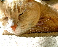 June 23, 2010: Genny had two normal-ish stools on Monday... I told the vet but they did ultrasound and saw no change in intestine and Genny had her exploratory abdominal surgery. Thickened small intestine, but no masses. No visible issues with any other organs. Biopsies were taken of her intestines and lymph nodes. While she was under (and handling the anethestic well) they pulled two bad teeth. I picked her up that evening. She looked horrible... very groggy, very gaunt, and clearly in pain. She wouldn't eat or drink or purr. Moved very slowly, and eased herself down onto her side and layed there like she was dead. I felt nearly as awful as she did.