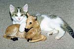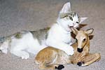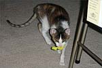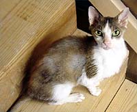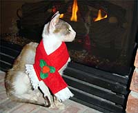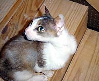 Story: He was 11 years old at diagnosis. He had vomited a few times a week all his life, so that was normal for him, but the end of October, 2002, he suddenly got much sicker, throwing up blood and having bloody stool. His numbers showed he was in a severe kidney crash. They did a fine needle aspirate of the kidneys, and they did not find lymphoma there. They gave him Carafate (Sucralfate) to heal the ulcerations in the stomach and hoped that would take care of the bleeding and the anemia. However, he continued to become more anemic, even as the blood in the stool stopped. They gave him a blood transfusion and IV fluids so that he would be strong enough for an endoscopy, since the ultrasound showed that they could reach the suspicious area that way. It is less invasive than full surgery. The results of the endoscopy showed a very aggressive, fast-growing lymphoma in the stomach lining. We got the results on November 18, and he started the COPA protocol of chemotherapy, which has helped a lot of kitties with similar lymphomas on the lymphoma list.