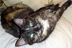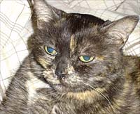 Outcome: Updated November 2006 - Katie just turned 16 on Nov.1! She is still on the Pred/Leukeran protocol and still doing well. She also gets B12 injections every two weeks and Omega 3 fish oil. Katie's lymphoma has been considered in remission for the last 7 months. We found a mammary lump in June 06 that turned out to be cancer but it was very small and we hope we got it all by removing that mammary gland. Katie's biggest problem is constipation which i believe causes some of the vomiting. She remains happy-playing with her milk rings-and affectionate.