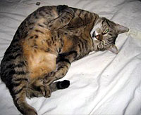 Outcome: 12th October 2008 - Kitty has finished induction of madsion - wisconsin protocol and doing so well! Very happy - he is spending his days sleeping in the sunshine and eating like a horse! :) He has chemo every other week now as we have done the induction phase, he is very happy about that no doubt!