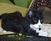 Story: I adopted Mario in June 04 as an untreated diabetic. He was in poor shape. On insulin he was improving. However, in September 04 he started not eating much and vomiting. A blood test showed high liver enzymes. Based on that an ultrasound was performed that showed blocked bile ducts. When they went into Mario to fix the ducts they took biopsies. The biopsies showed the lymphoma. Neither the oncologist nor my vet will give pred because he is diabetic so he is only on Leukeran (2mg) MWF. In Feb 05 and again in April 05 he had an infection as evidenced by high WBC. He was hospitalized and given IV antibiotics. After the last round I had to syringe feed him and give him sub-q fluids since he would not eat or drink.