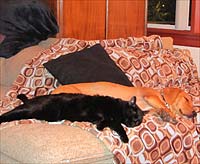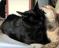 Story: Nietzsche was rescued from a litter of stray cats. The man who took him in gave him to me when he was 8 months old because he had been severely beaten up by other cats. He is a cuddler and I don't think the other cats cared for that. At that time I had one other cat, Roxy. I took him in and later found out he had a mild case of cerebral hypoplasia. At that time he had tested negative for feline leukemia (as had Roxy). Both of my cats are strictly indoor. The two have become quite close, spending most of their time snuggled up with each other.
