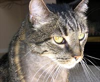 Story: Sheppy was officially diagnosed with lymphoma on 6/20/2007. I say 'officially', because they (MedVet in Worthington, OH.), initially diagnosed him as having a Thymoma. Due to their original misdiagnosis, he has endured 4 needless surgeries, countless biopsies, and endless needle aspirations. Needless to say, these past 4 months have been absolute hell on him, as well as myself. However, I was not ready to give up on him. He never acted sick, and still had a sparkle in his eye. So, after receiving the correct diagnosis, we decided upon chemotherapy. He is currently on the Madison-Wisconsin 25-week, combination chemotherapy protocol. This consists of Vincristine, Cytoxan, and Adriamycin. He is also taking 5MG. of Prednisone twice daily, as well as 1/4 of a tablet of Pepcid, and 1/8 of a teaspoon of Tylan powder for his diarrhea. At this point, because of his weight loss over the past few months, he is eating pretty much whatever he wants to. I give him an endless bowl of kitten chow dry to snack on throughout the day, as well as 2 small plates of tuna, and 2-3 cans of Sheeba or Fancy Feast. His appetite is still really good, and he has finally gained a bit of weight...approx. 7 ounces over the last 2 weeks. He has not been suffering from any side-effects, with the exception of very minimal vomiting a day or two after a treatment. He just had his 8th treatment, Adriamycin, on Wednesday, and is doing so well, that he now gets a rest of 2 weeks between each treatment.