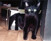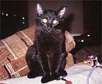 Story: Sly began breathing rapidly in late July. After a week we took him to the Vet and she took an x-ray. Sly's thoracic cavity was full of fluid and it was compressing his lungs and heart. The vet withdrew about 1,5 mil of plueral fluid and checked for FIP. She said the fluid was clear yellow with a small amount of blood. About a week later, we returned to the Vet and Sly had a fever. He was given an antibiotic and a shot of Prednisone. He improved greatly: eating well and playing with our other two cats. His remission lasted 6 weeks and than he began rapid breathing again. (90 breaths per minute) The Vet gave him another shot of Prednisone and within three days he seemed better and his breathing was normal. Again he ate well and played. About six days later he began coughing as if to cough out the fluid but nothing was expectorated. He continues to act like he feels pretty good, eat well amd chase the other cats.